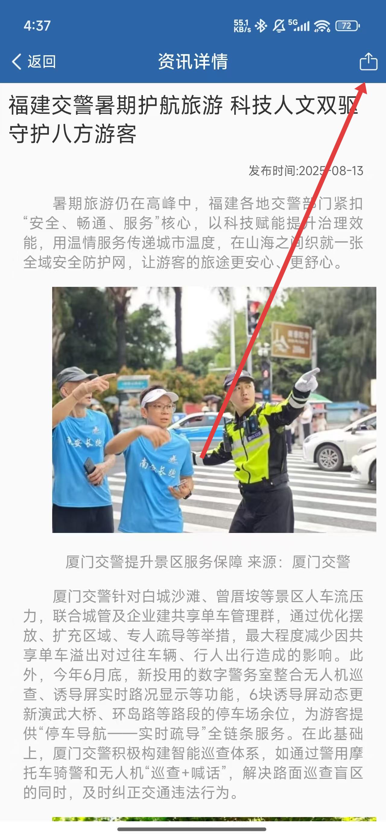 3、在资讯详情页面中,可以点击右上方图标按钮进行上传操作。