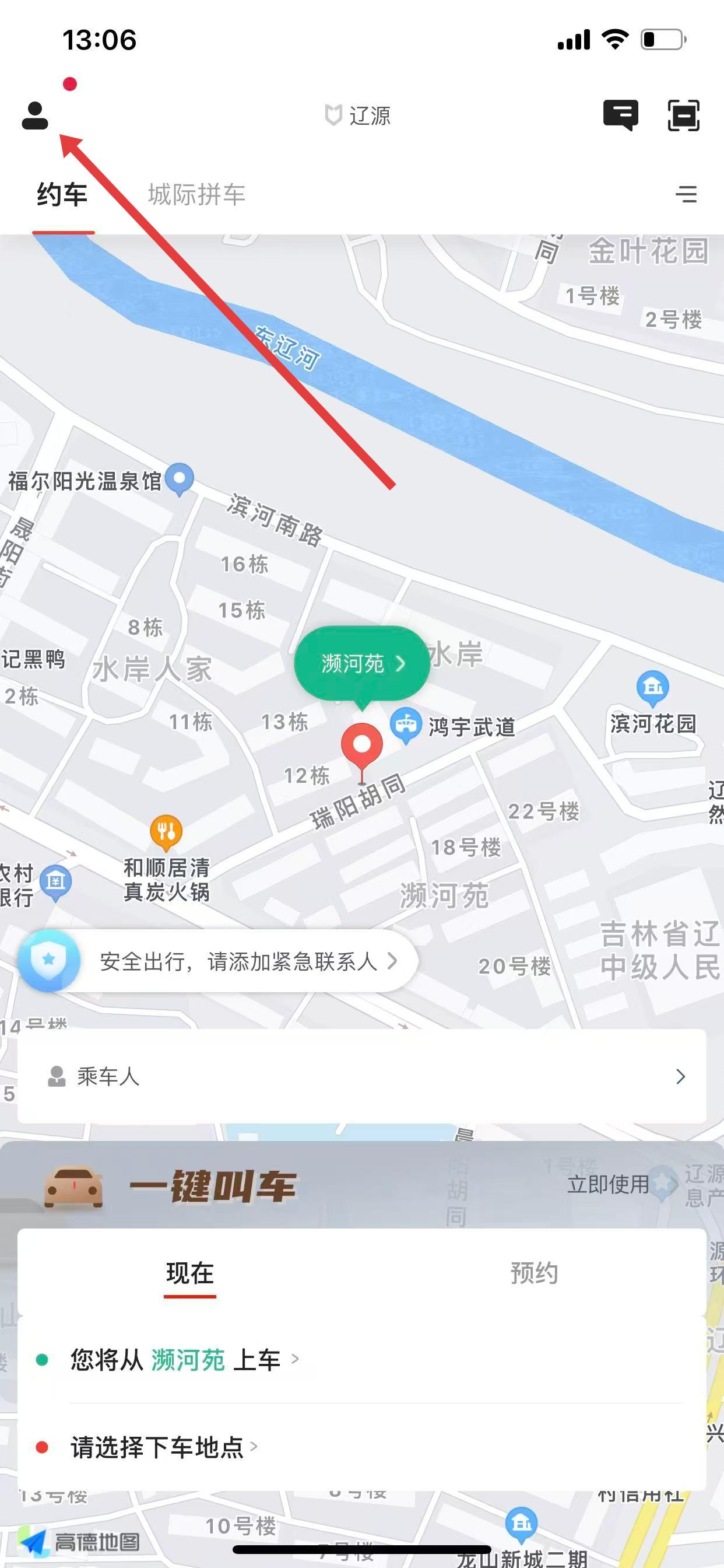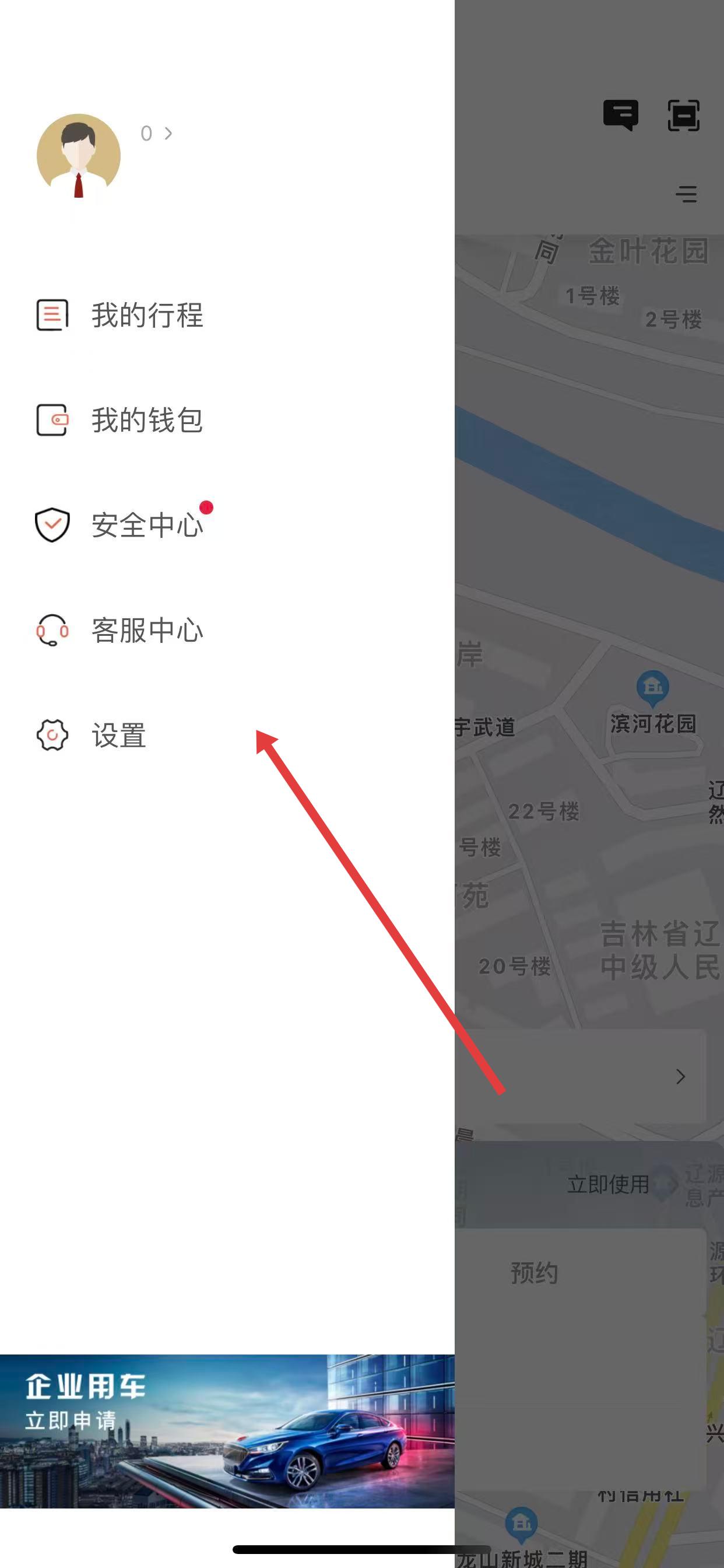 1、打开旗妙出行App,点击左上角的个人头像 ,打开侧边栏菜单。
