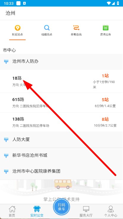 2、在实时公交页面,选择要查询的公交线路。