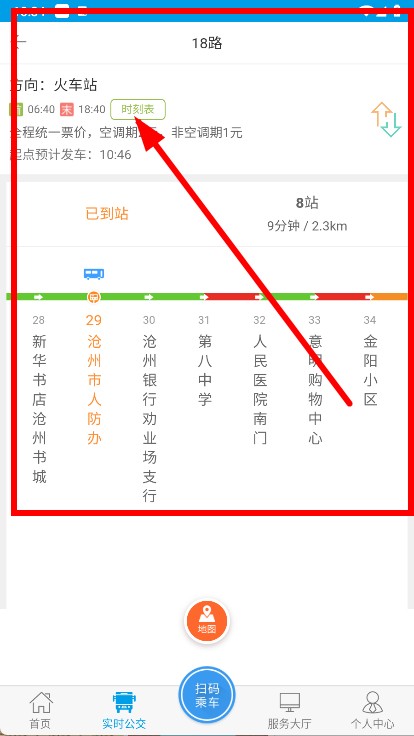 3、进入18路公交详情页,点击时刻表。