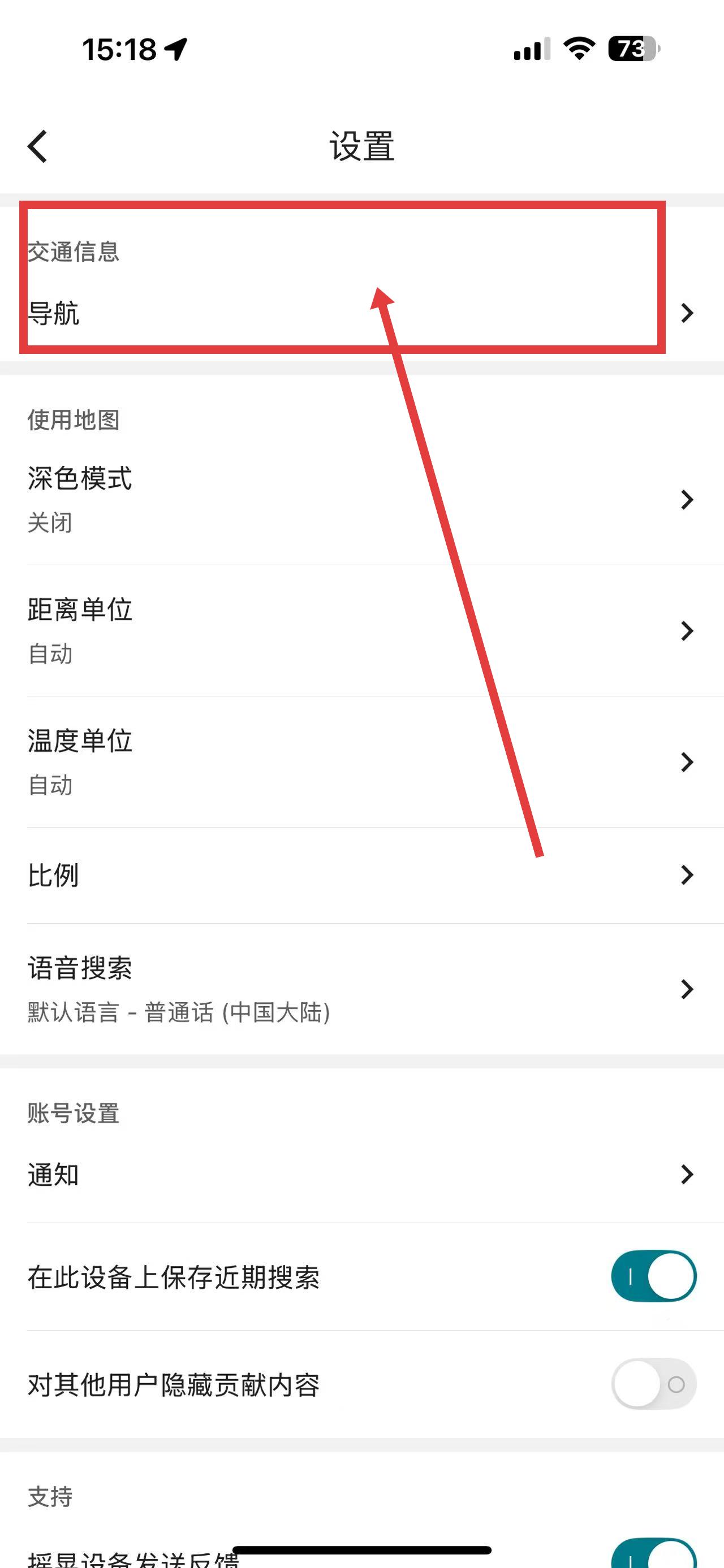3、在导航设置界面里,找到停车板块。如需自动保存停车位置,点击保存停车位置右侧的开关按钮将其开启。
