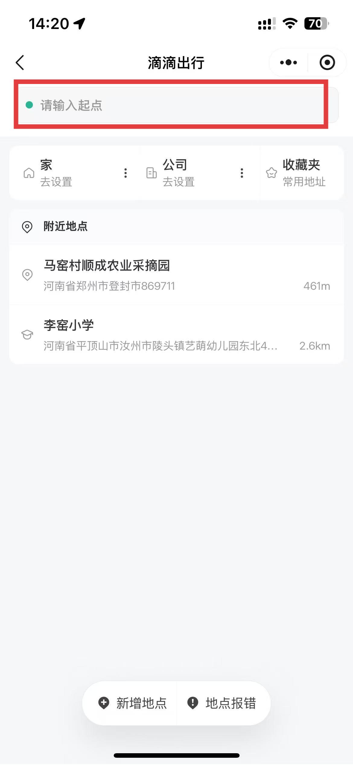 3、点击输入框设定打车的出发地点,若有常用地点也可直接选择。