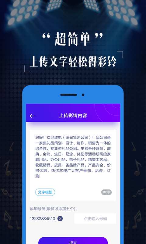 彩铃定制:1.这个应用可以在线试听企业集团彩铃,广告彩铃样音,在线联系制作商务彩铃,有声名片等!2.方便联系在线客服,咨询相关业务。3.彩铃样板参考等