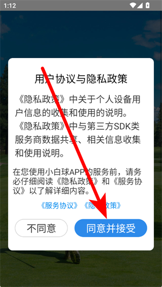 1、打开小白球,在弹窗中,点击同意并接受。