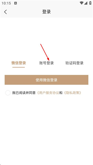 3、在登录页面点击账号登录选项,切换到账号登录界面。