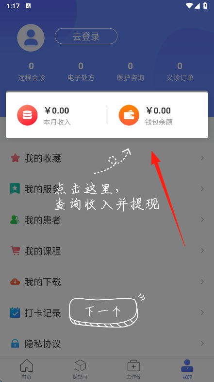 2、切换到底部导航我的页面,在页面上方找到本月收入与钱包余额区域,点击进入,能查询收入明细,按指引操作可进行提现流程。