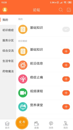 2. 综合交流。八个癌种的讨论分区,创造无障碍交流空间,随时与肿瘤患友、家属及医药专家探讨治疗康复经验,分享豁达乐观心态。