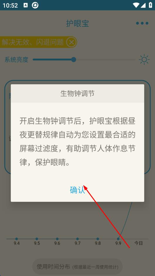 2、点击后会弹出生物钟调节提示框,阅读相关说明后,点击确认。