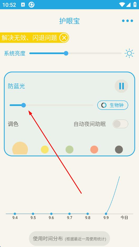 3、确认后,回到主界面,可以通过调整防蓝光下方的滑块,设置你想要的蓝光过滤程度。
