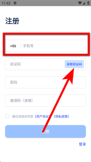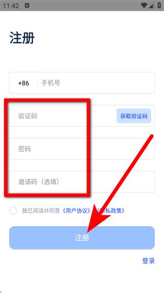 4、输入验证码并设置密码,勾选协议,点击注册,完成注册。