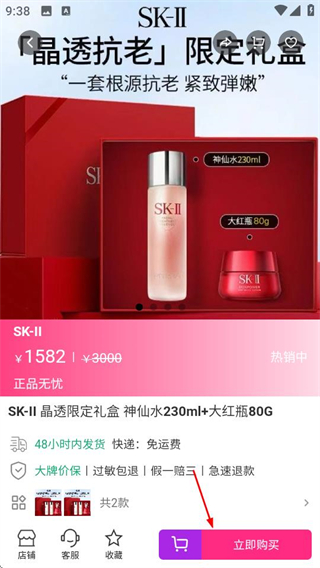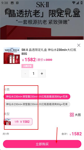2、在美妆推荐页面,点击SK-II神仙水礼盒商品,进入商品详情页面。
