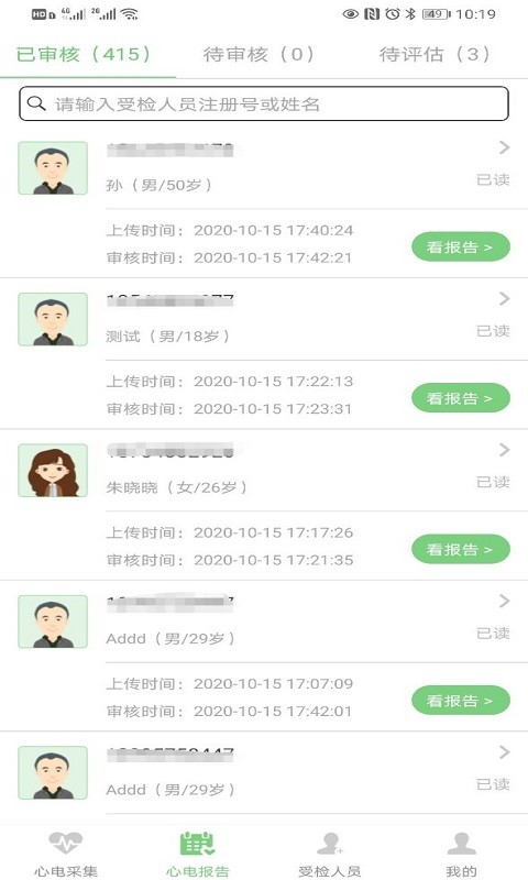 查看心电报告的审核信息,知道报告的情况,便于管理,提高心电报告的使用效率,给受检人员真实的数据;