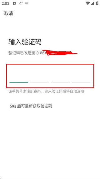 4、在输入短信验证码页面填写收到的验证码,完成账号的登录操作。