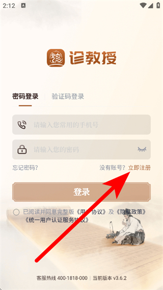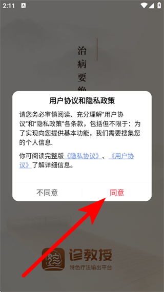 1、打开诊教授,在弹窗中,点击同意,进入登录页面。