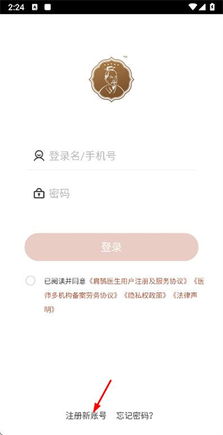 1、在登录页面点击注册新账号选项,进入注册账号页面。