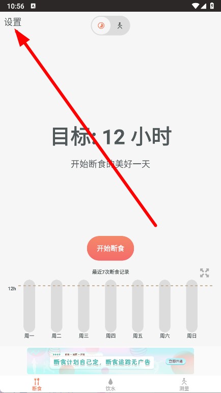 1、打开断食追踪,点击左上角设置选项。