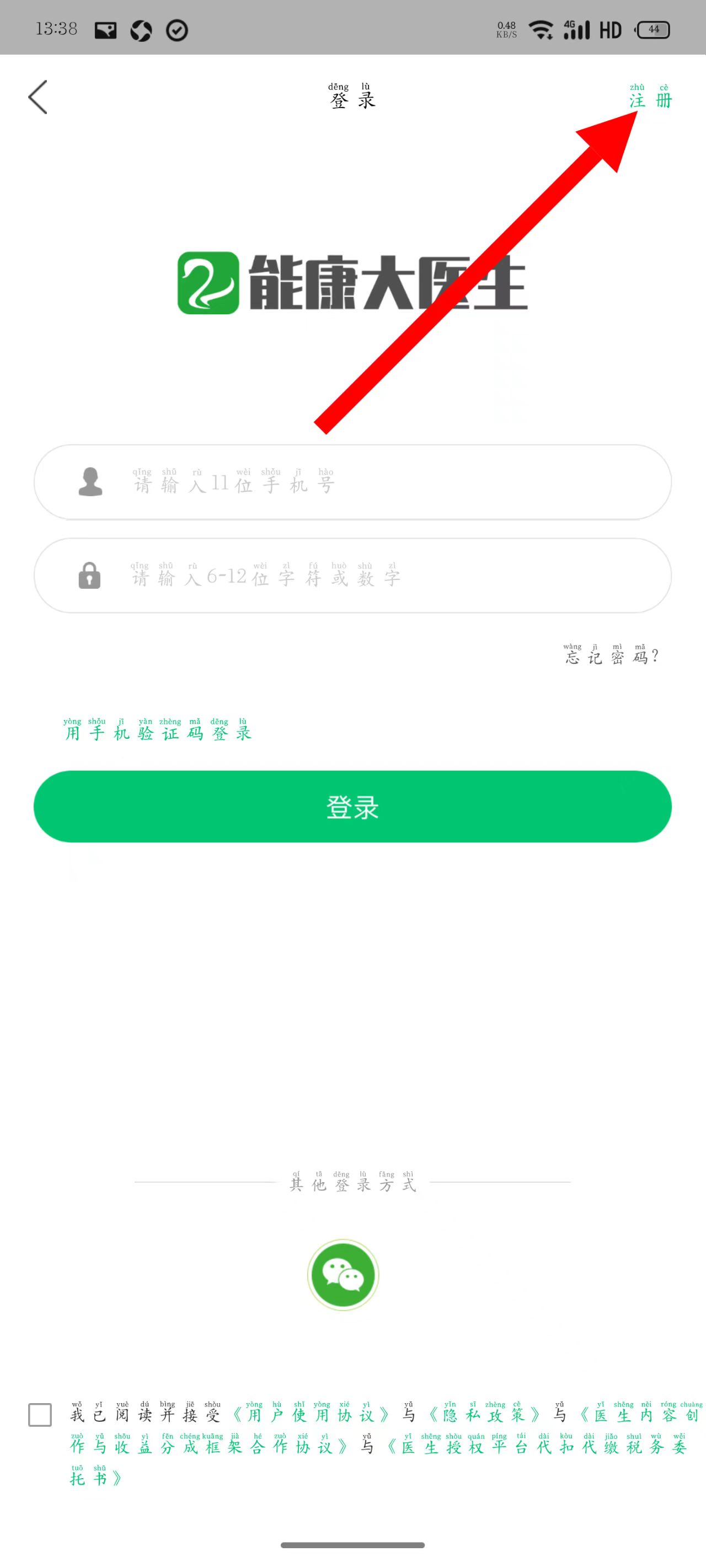 3、在登录页面,点击右上角注册选项。
