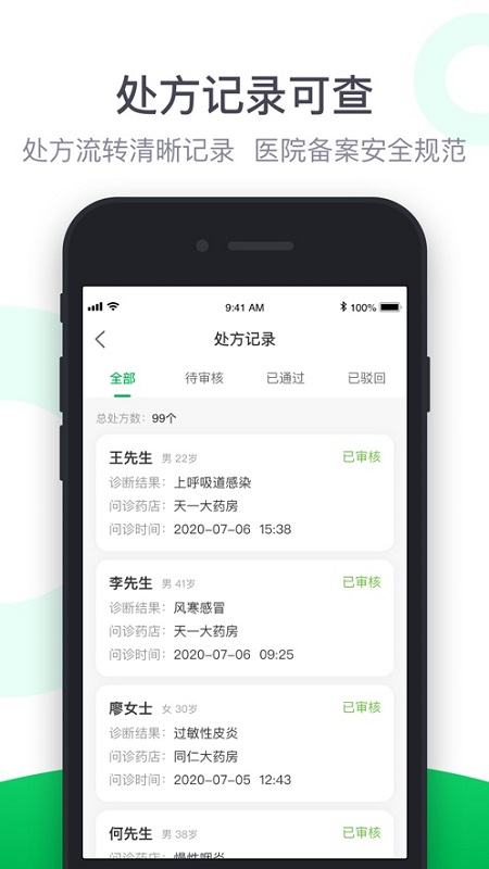 -医生开具的处方经过医院的备案,可随时查看处方记录。