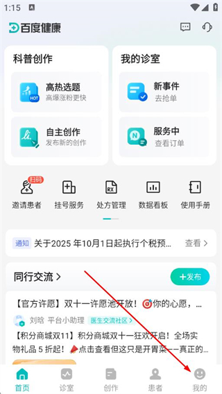 1、打开百度健康医生版APP,点击底部我的选项。