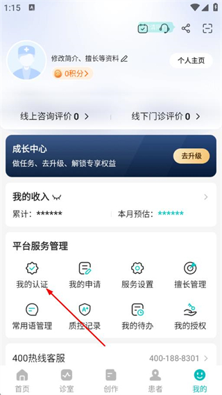 2、在我的页面点击我的认证选项,进入实名认证页面。
