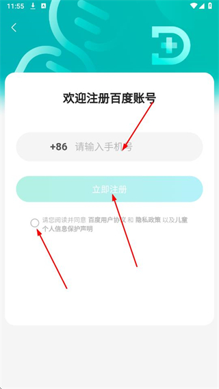 3、进入注册页面,输入手机号码,勾选请协议,点击立即注册。