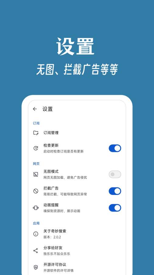 奇妙搜索是一款高效的互联网资源搜索应用,集成了多个搜索引擎,支持快速切换,同时浏览多个搜索结果。
