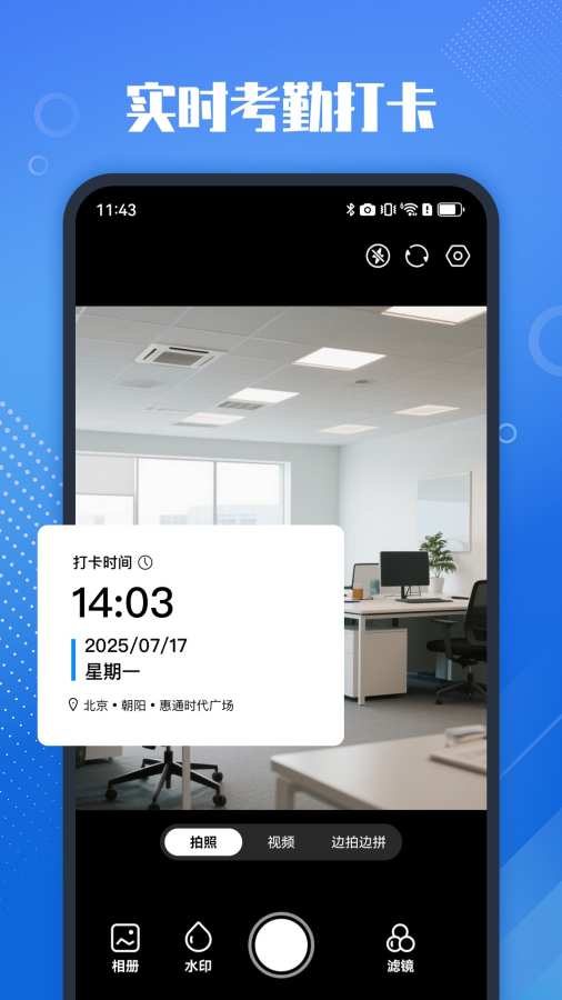 真实打卡水印相机不仅仅是一款相机应用,它是一个场景化解决方案库,让工作更加可信赖,生活更有温度,危机时刻能提供自我保护。