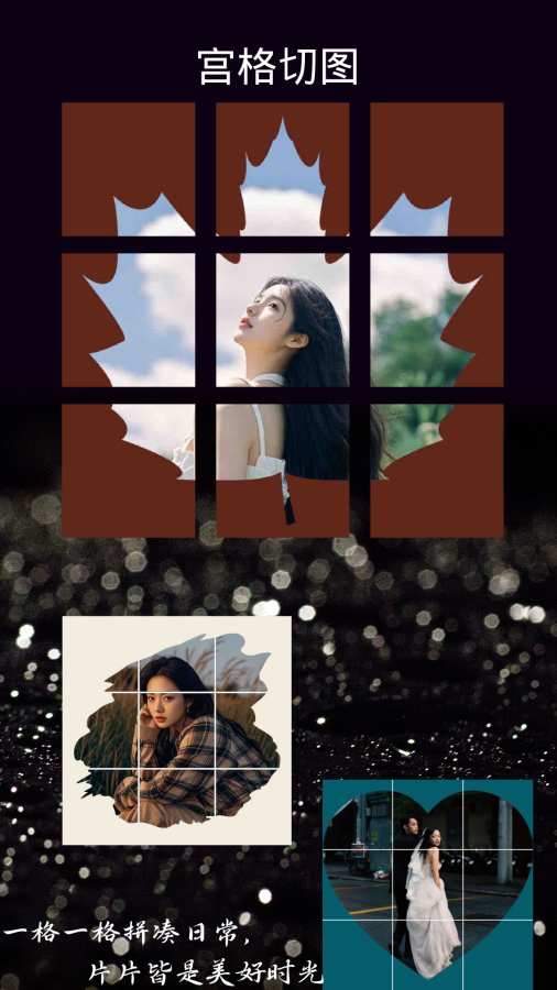 • 图片宫格裁剪、拼贴:多样化形状与模板选择,灵活裁剪、拼接图片,创意无限,轻松制作与众不同的拼图。