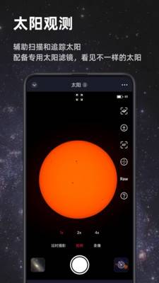-太阳观测模式:支持自动扫描和太阳跟踪,使用附带的太阳滤镜观测不一样的太阳。