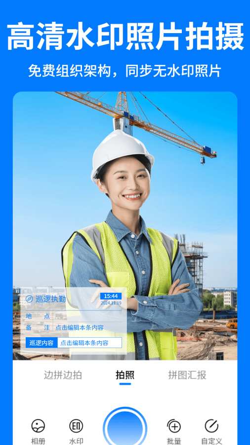 工程水印:专为工程施工管理设计,能准确的记录工程影像资料,加工程名称、建设单位、监理单位、施工单位、设计单位、勘察单位等水印;