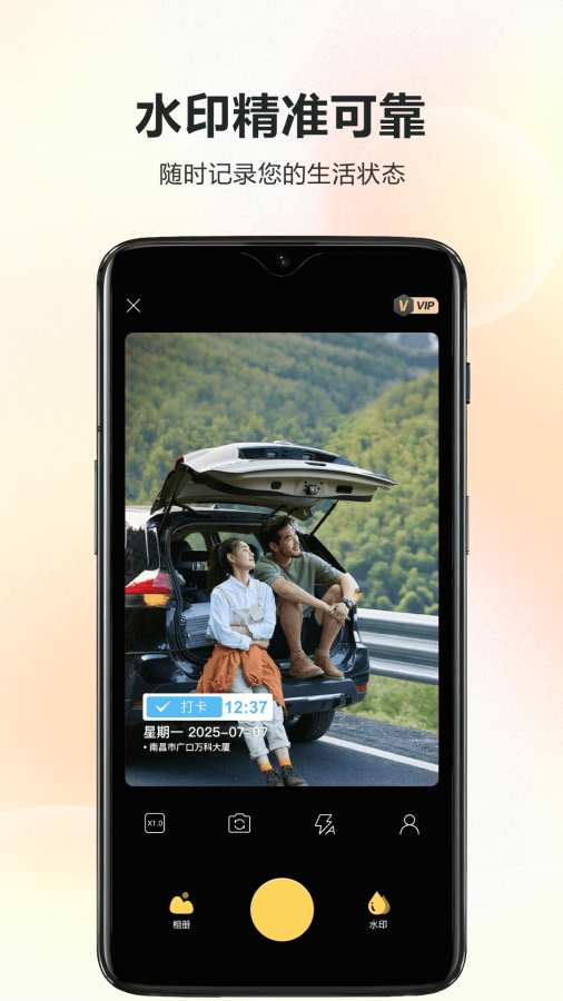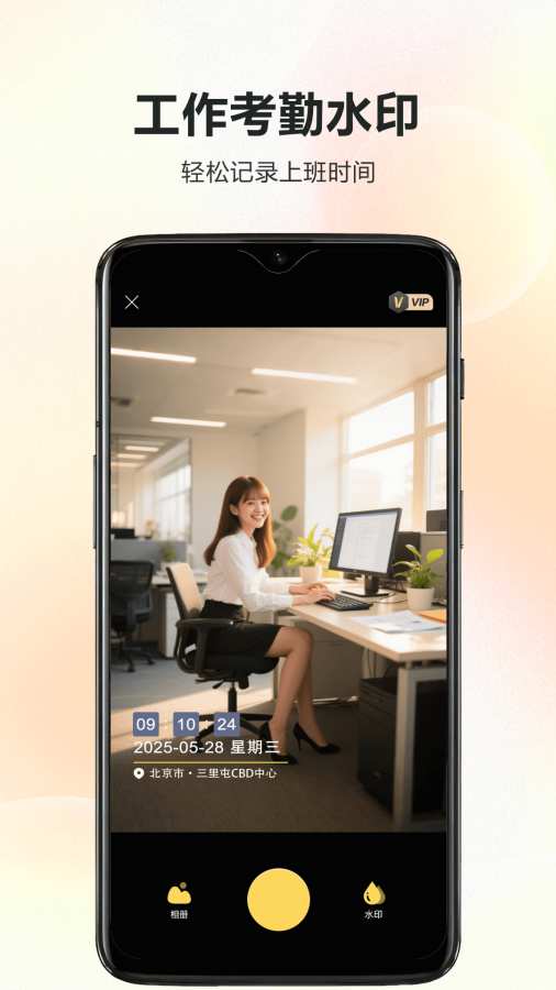 迅拍水印打卡相机,一款可以用于工作考勤的水印相机,可以添加考勤打卡水印,添加位置水印、时间水印和工作描述等各种所需的水印,用于旅游记录美好瞬间!