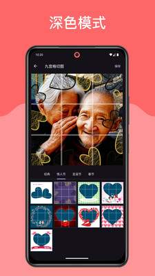 瞬间将一张照片切分为 9 张图片,引爆社交网络新玩法。特效 + 创意,你就是下一个社交大明星。==== 产品特点 ====【多种特效】多种切分形状,让你随心选择,天天都有新创意。【一键保存】一键保存所有图片到相册,按顺序发布到社交平台,等待朋友们的赞美吧。【场景广泛】朋友圈、微博、QQ 空间,任何支持九宫格排列的地方都能用到它。 来自应用汇: 九宫格切图