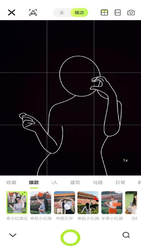 应用通过增强现实(AR)功能屏幕上显示姿势廓和构图参考线,指导用户调整站位角度和动作。