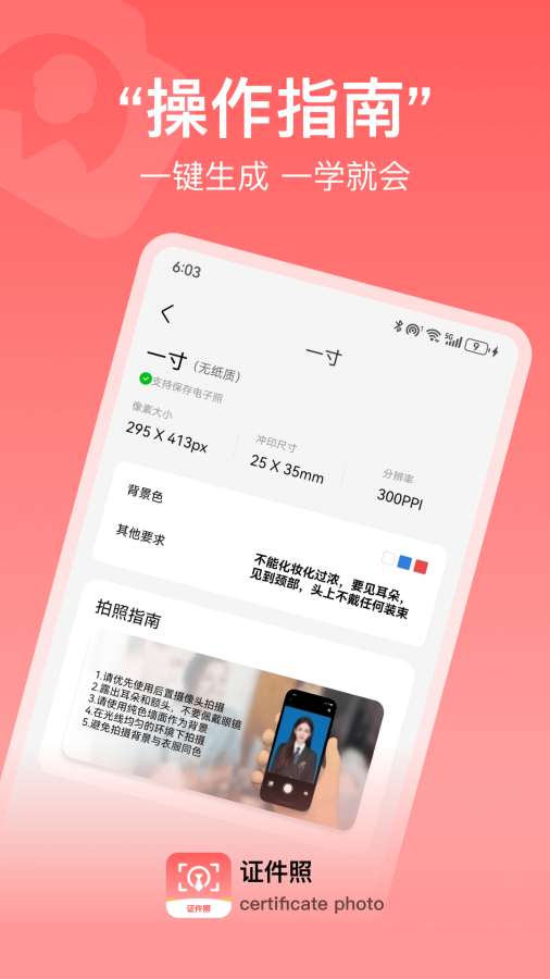 自拍证件照,登记照、学生照、一寸证件照、众多类型的证件照随意制作。担心证件照不好看?有了能自拍的精美电子证件照,你完全可以打消这个顾虑。这是一款功能强大的证件照APP,有了它可以轻松制作自己的证件照,再也不用担心工作照或者签证照片不好看啦!让你拥有美丽证件照! 来自应用汇: 标准证件照