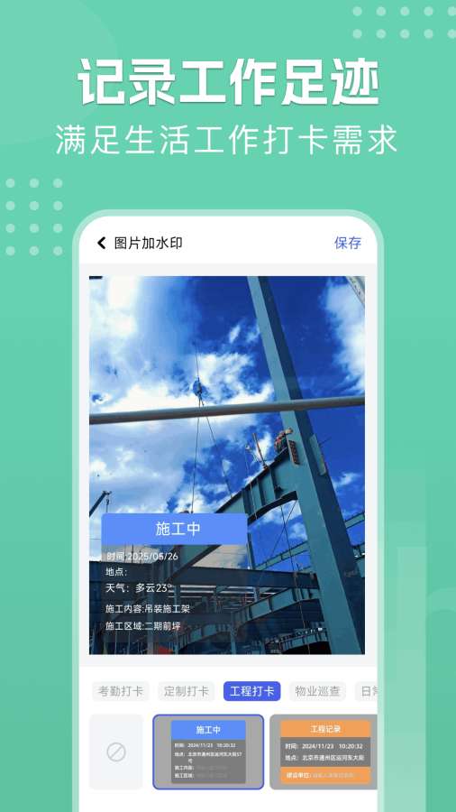 考勤打卡、工程记录、物业管理、日常打卡等,满足您在不同场景的拍照打卡记录需求,还原真实生活场景。