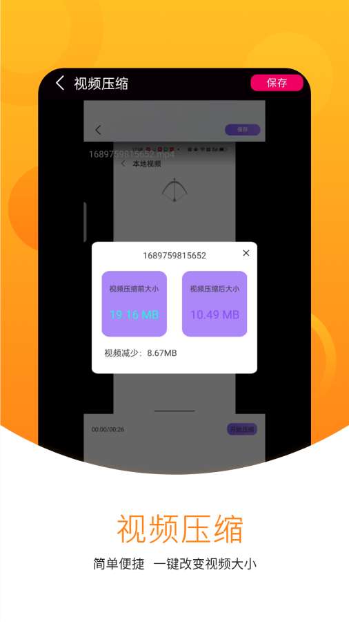 是一款全能简易的视频编辑器,是视频制作美化的专业工具,更是小视频 短视频制作的好助手,让您轻松进行视频剪辑 功能如下 1、视频裁剪:可以随意裁剪视频长度 去除不想要的片段,轻松剪视频 2、视频压缩:保证视频质量情况下压缩视频大小,更省空间 分享更便捷 3、视频倒放:自拍小视频,邀你一起乘坐时光机感受时光倒流,倒放逆放带来更多魔术感觉; 4、视频变速:轻松改变视频节奏,支持视频加速,减速,快进,慢放; 5、视频拼接:多个视频无缝合并,多种精彩合而为一! 来自应用汇: 手机剪辑
