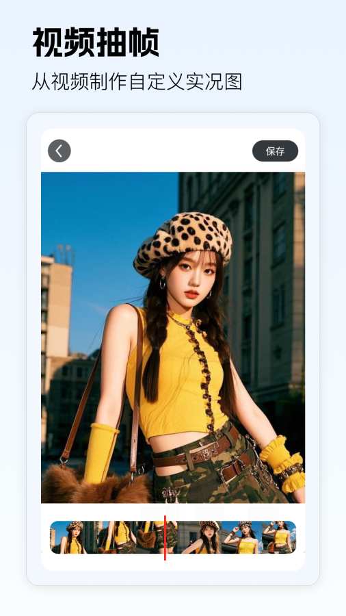 在视频方面,应用还配备了视频抽帧功能,将视频中的精彩瞬间一键定格为高清照片,不再错过每一个完美表情与动作。