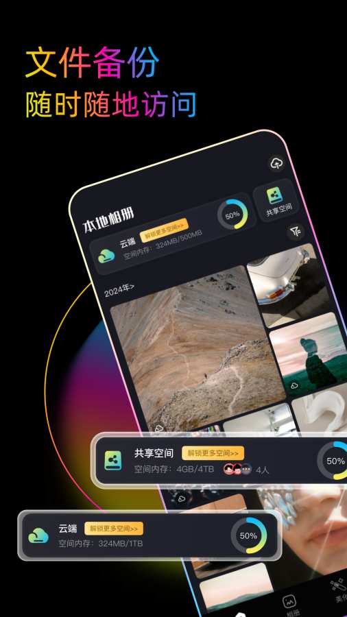 云空间就像一个安全可靠的私人仓库,为你提供海量存储,再也不用担心珍贵回忆因手机内存不足而丢失。私密相册采用先进加密技术,全方位保护你的隐私,只有你能查看那些不想被他人知晓的照片。长图拼接让你轻松将多张图片合成长图,记录完整的精彩画面。画质增强和图片修复功能,运用强大的 AI 算法,让老旧、模糊的照片重焕生机。共享相册则是你与亲朋好友分享快乐的纽带,让美好瞬间得以传递。