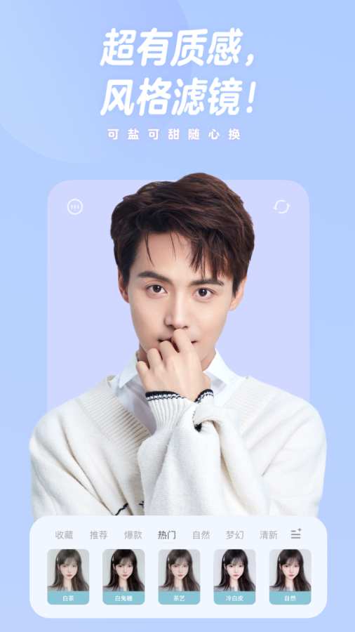 百变风格质感滤镜,氧气妆容轻量美颜,可盐可甜你定义。
