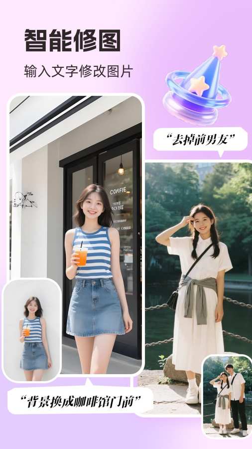 只需输入需求,即可实现 图片去水印、照片去背景、局部修复 等操作,让照片更加完美。