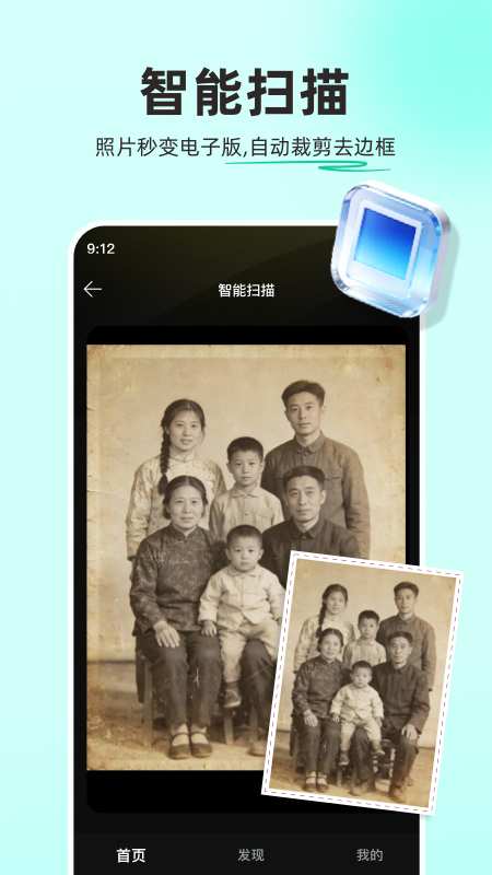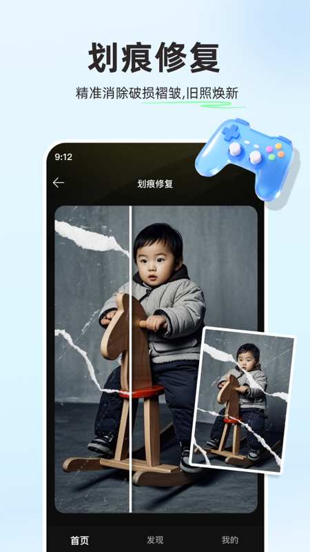 **智能修复** - 自动修复老照片的破损、划痕、污渍等问题
