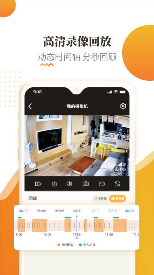 【高清回放】支持SD卡本地存储和云存储并存,视频数据双重备份更安全。(云存储需单独购买),高清视频回放,不让您错过任何关键时刻;