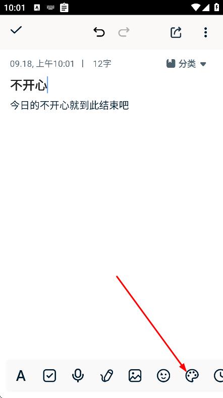 2、输入笔记内容,还可点击底部功能图标进行相关设置。