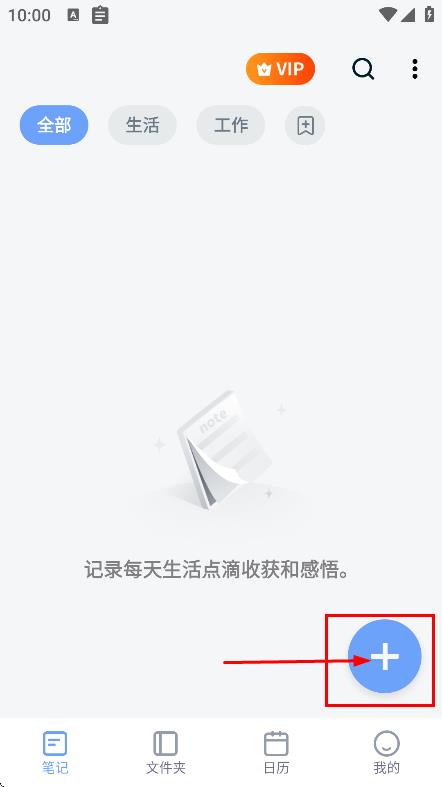 1、在笔记页面,点击右下角的+,进入笔记编辑页面。