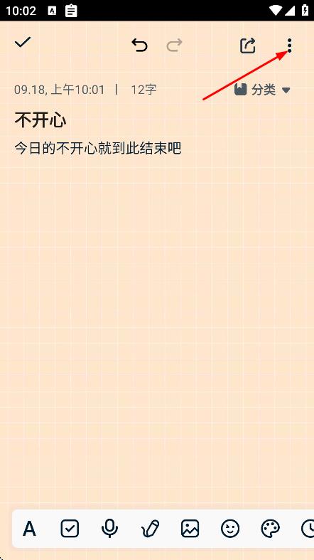 3、在笔记编辑页面,点击右上角三点图标,弹出功能菜单。