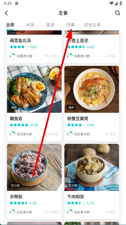 2、进入主食页面后,点击汤羹分类。