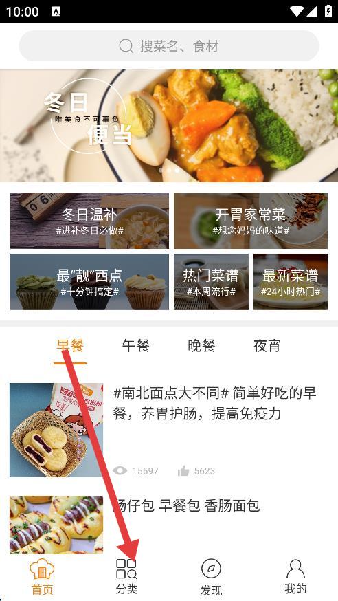 2、在分类界面中,选择标签找到想要查看的菜品类别并点击。