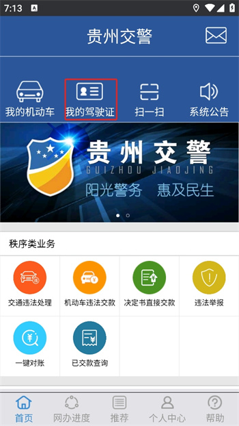 1、进入软件之后就会看到上面有一个【我的驾驶证】,想要绑定驾驶证就需要直接点击进入,开启绑定的流程。