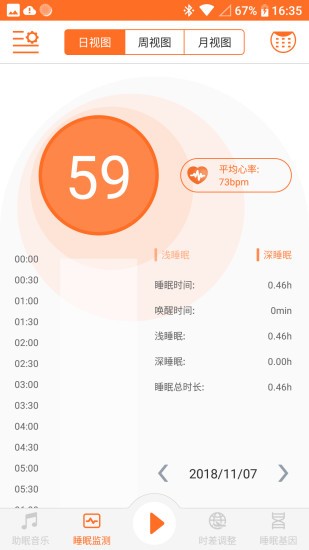 4、睡眠情况生成视图,用户可以选择日、周或月视图进行查看了解。