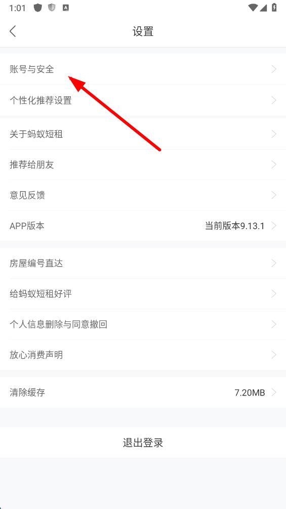 3、在设置页面里,点击账号与安全选项,进入账号安全界面。